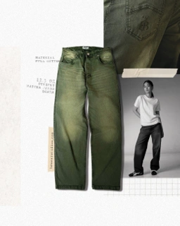 Bewear - Stretchy Loose Jeans Green Matcha